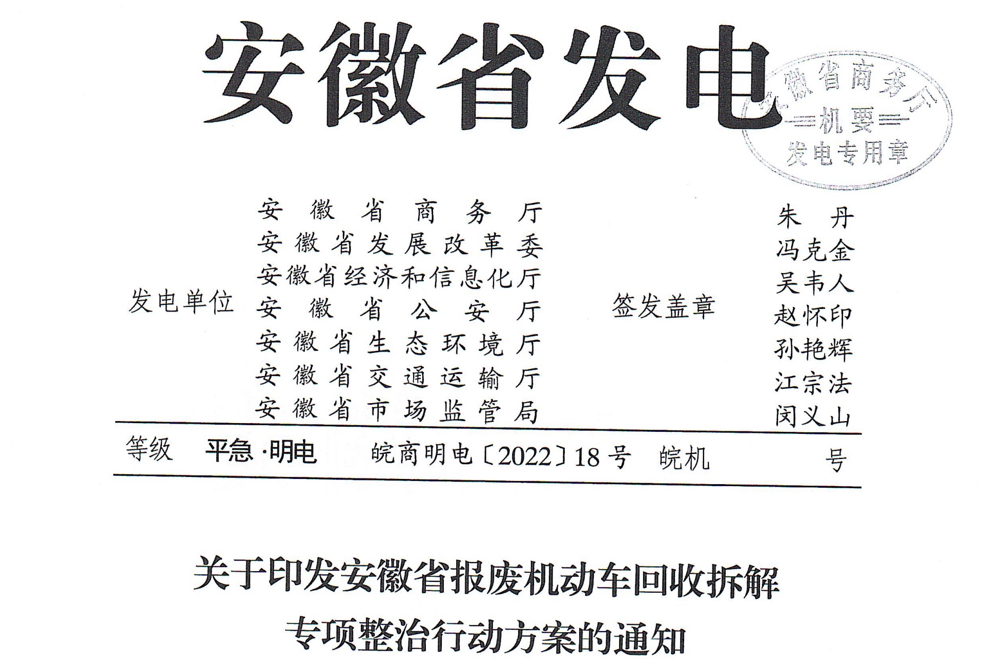 各市商務(wù)局,廣德市、宿松縣商務(wù)局:4月16日,生態(tài)環(huán)境部發(fā)布典型案例“安徽省滁州市鳳陽(yáng)縣機(jī)動(dòng)車(chē)拆解行業(yè)監(jiān)管缺失環(huán)境污染嚴(yán)重”,充分暴露出我省一些地方和部門(mén)報(bào)廢機(jī)...