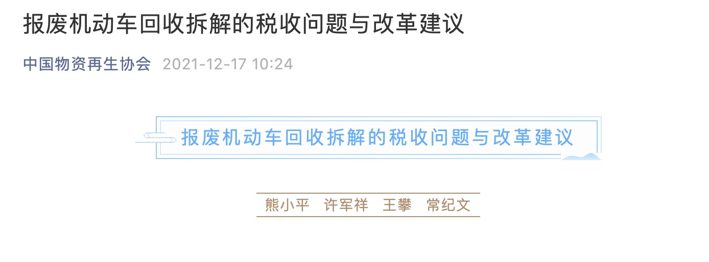 為解決報(bào)廢機(jī)動(dòng)車拆解行業(yè)稅收問題,玉成有限公司董事長王攀先生攜手行業(yè)大咖,共同提出《報(bào)廢機(jī)動(dòng)車回收拆解的稅收問題與改革建議》。