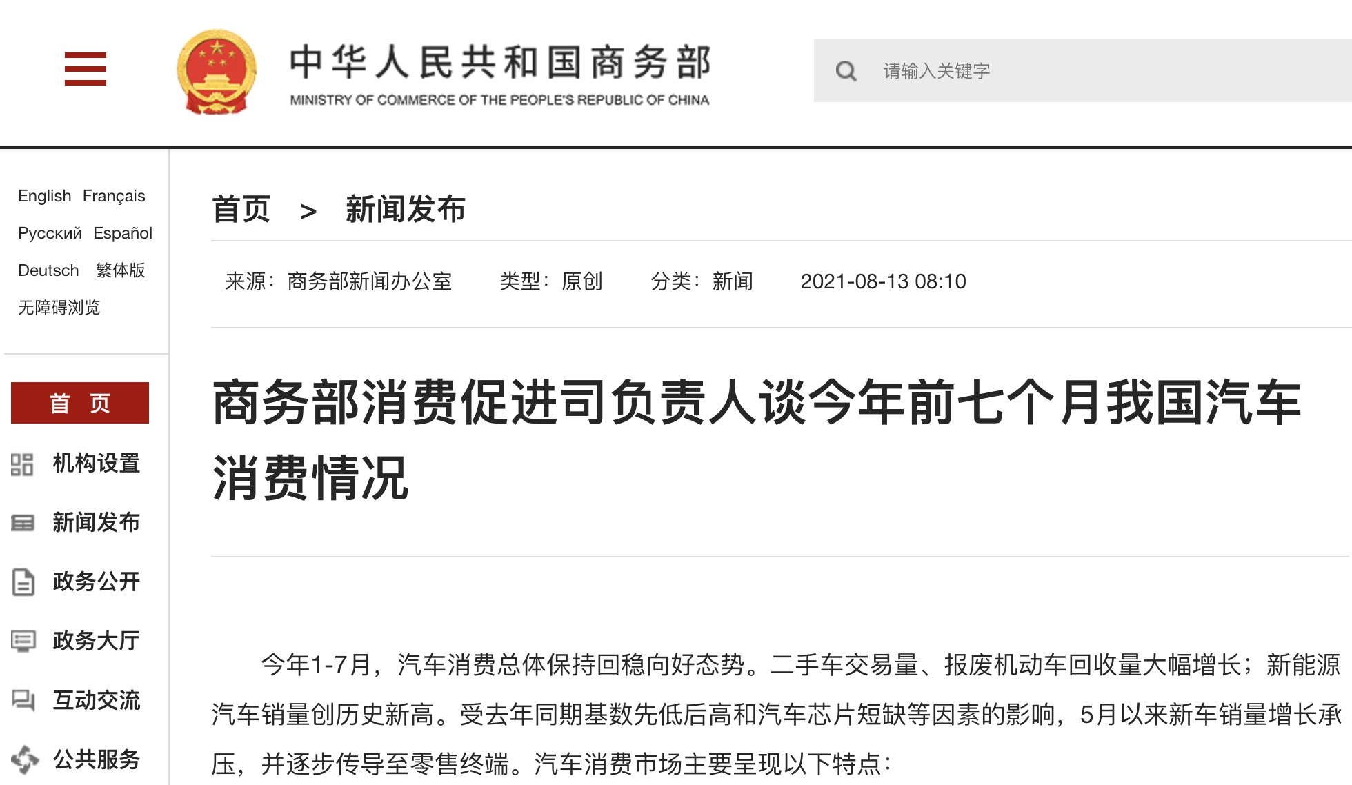 今年1-7月,汽車(chē)消費(fèi)總體保持回穩(wěn)向好態(tài)勢(shì)。二手車(chē)交易量、報(bào)廢機(jī)動(dòng)車(chē)回收量大幅增長(zhǎng);新能源汽車(chē)銷(xiāo)量創(chuàng)歷史新高。受去年同期基數(shù)先低后高和汽車(chē)芯片短缺等因素的影響,...