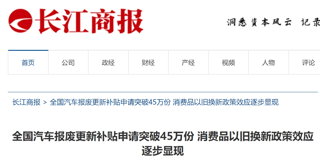 全國(guó)汽車(chē)報(bào)廢更新補(bǔ)貼申請(qǐng)突破45萬(wàn)份