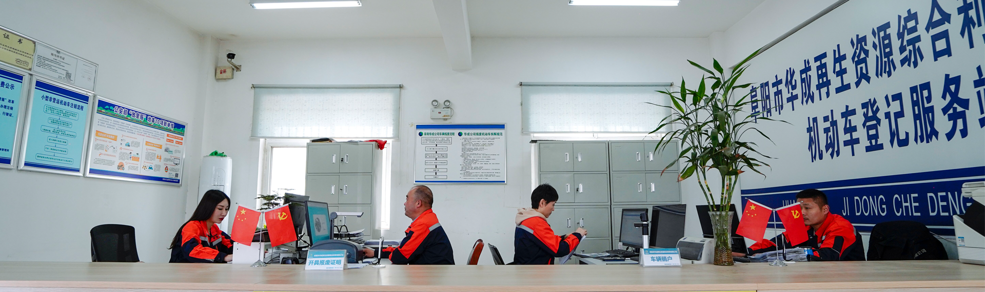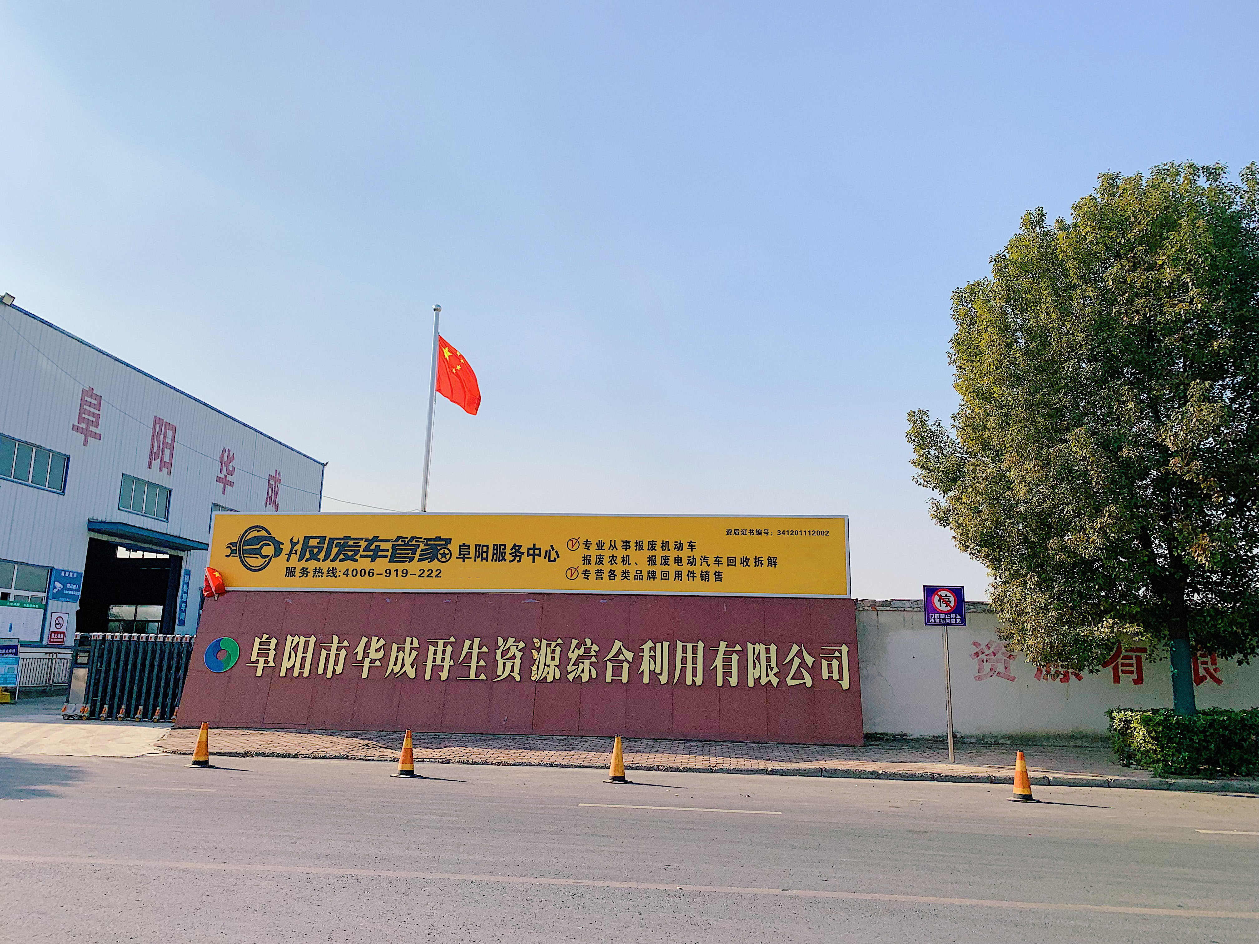 阜陽市華成再生資源綜合利用有限公司成立于2012年,是玉成(北京)有限公司控股企業(yè)。廠址位于阜陽市經(jīng)濟開發(fā)區(qū)汽貿(mào)物流園,占地72畝,年回收拆解能力30000輛/臺(報廢機動車20000輛、報廢農(nóng)機10000臺)。