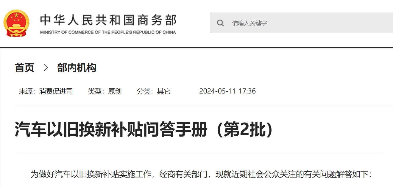 商務(wù)部:汽車以舊換新補(bǔ)貼問(wèn)答手冊(cè)(第2批)