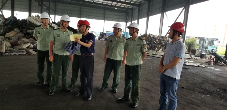 隨后在拆解車間,扶德才處長一行就此次的武警安徽總隊退役報廢車輛現(xiàn)場拆解進行監(jiān)督,過程中不斷與皖中公司相關(guān)陪同人員進行交流,對皖中公司拆解現(xiàn)場的安全防范工作給予高度評價。