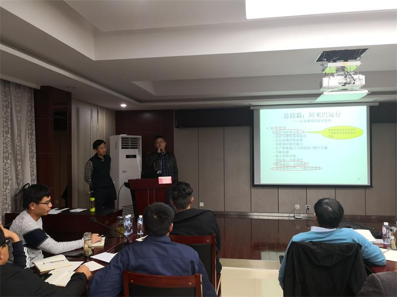 本次會(huì)議一改往期的人員座次,將全體人員按5人一組共分成8個(gè)阿米巴小組、一個(gè)考核組,每組推選一個(gè)巴長(zhǎng),整場(chǎng)培訓(xùn)會(huì)由副總裁何學(xué)海詳細(xì)解讀阿米巴經(jīng)營(yíng)理念、精髓、意義。結(jié)合玉成現(xiàn)有業(yè)務(wù)如何導(dǎo)入阿米巴經(jīng)營(yíng)模式、如何落地以及如何對(duì)每個(gè)阿米巴進(jìn)行考評(píng),最后通過(guò)阿米巴的理念來(lái)制定工作計(jì)劃和目標(biāo),并將計(jì)劃和目標(biāo)落實(shí)到每季、每月、每周,以此來(lái)實(shí)現(xiàn)公司內(nèi)的每個(gè)阿米巴內(nèi)的全員自發(fā)高效的工作,完成個(gè)人和企業(yè)利潤(rùn)最大化。