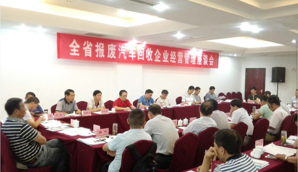 2015年8月10日,安徽省報(bào)廢汽車回收拆解企業(yè)經(jīng)營管理座談會在合肥召開,安徽省商務(wù)廳市場建設(shè)處副處長陳俊海,省物質(zhì)再生協(xié)會會長王攀、副會長兼秘書長李順清及全省22家報(bào)廢汽車回收拆解企業(yè)主要負(fù)責(zé)人等出席了本次會議。